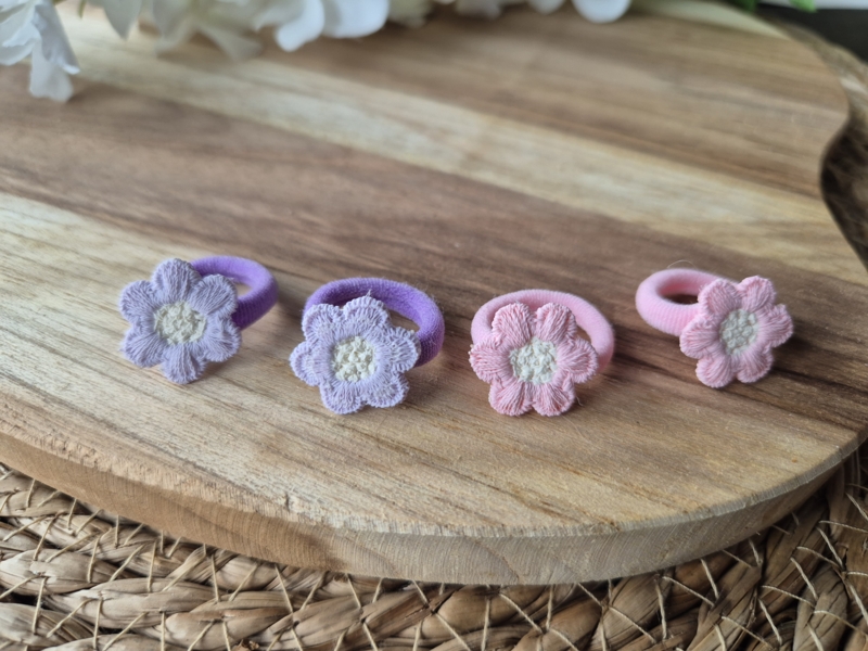 Lief en tijdloos! Deze set haarelastiekjes met een zachte bloemapplicatie is perfect voor elke dag. Geen glitter, wél stijl. De bloemen geven een subtiel en speels accent aan elk kapsel – ideaal voor kleine meisjes die houden van eenvoud met een schattige twist.